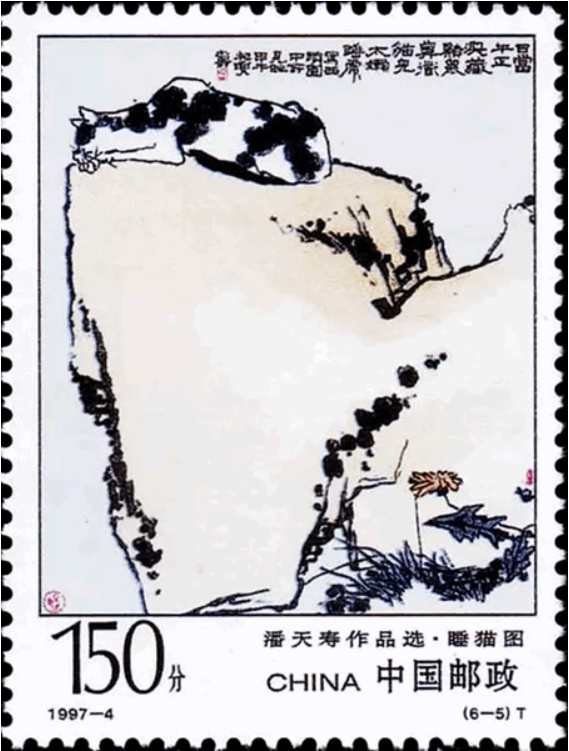 1997年3月14日,邮电部发行的《潘天寿作品选》特种邮票,全套6枚,第5枚邮票选用了潘天寿于1954年创作的“睡猫图”,面值150分。