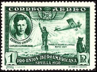 与其他动物相比,猫咪首次登上邮票的时间较晚,为1930年10月10日(刚好就是明天~)。这套航空主题邮票在西班牙发行,用于纪念“塞维利亚拉丁美洲博览会”。